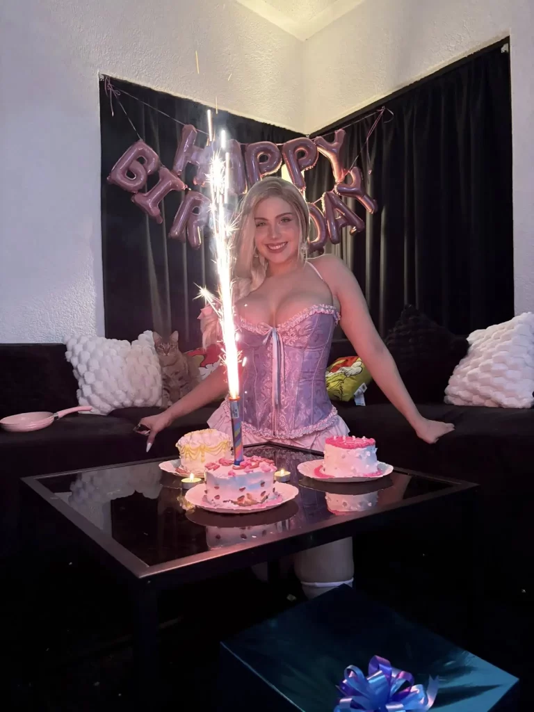 La hermosa influencer porno penny love cumplió años el 12 de noviembre y subió unas fotos soplando la vela jajaja. Pero esta vez no era una vela de carne no piensen mal, literal es una vela de cumpleaños jajaja. También tiene un par de pequeños pasteles que la verdad son demasiado pequeños, pero supongo que para ella y el gato sería suficiente jeje.