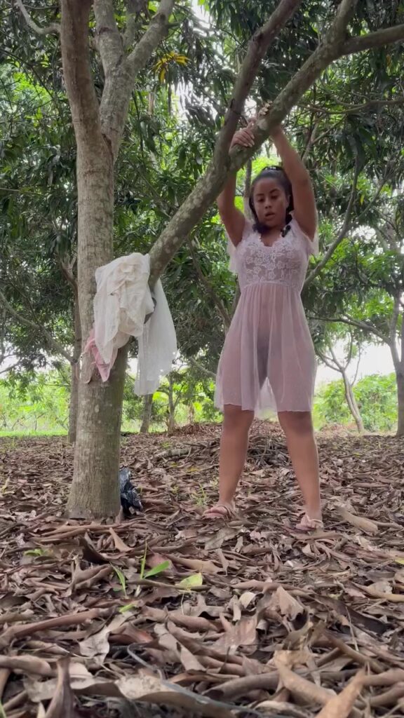 Esta hermosa puti pobre latina decidió tener una aventura por el monte y se salió completamente desnuda de pies a cabeza. Lo único que la medio tapaba, era un vestido muy transparente que normalmente se utiliza como pijama. Y la verdad se ve ultra rica, sobre todo esos pezones que oscurecían el vestido y la parte de su vagina también.